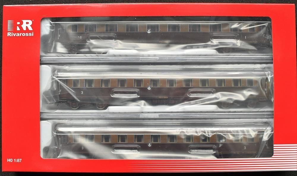 1,2等コンパートメント客車3両セット 3 pcs. Set of passenger coaches in “Castano/Isabella” livery FS
