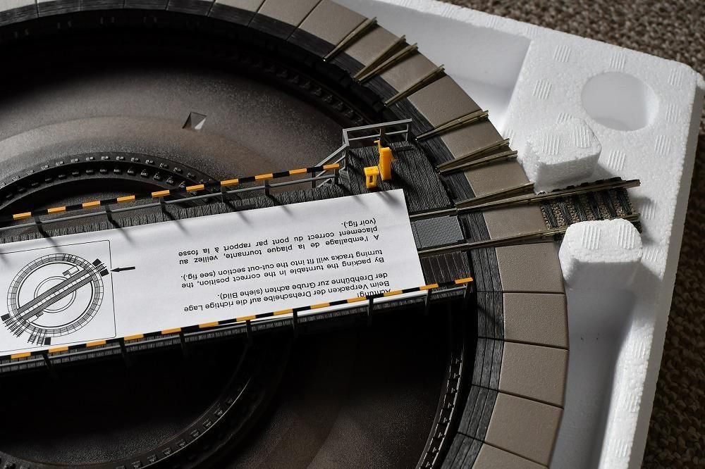 The turntable is prototypically mounted in a recess and fitted with accurate details. As delivered, there are 6 exit tracks and 4 over-run ends. The exit tracks can be unclipped and repositioned as desired, or extended using the turntable extension set 6153 right up to the complete 48 exits.